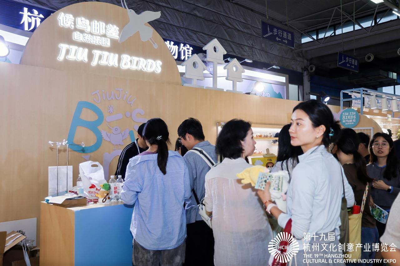 在展馆中,“JIU JIU BIRDS 候鸟邮差自然乐园”成了一道流动的风景。不少观众的背包和衣襟上,都点缀着以反嘴鹬、丹顶鹤等候鸟为原型的卡通徽章和布偶。这些萌趣形象背后,是严谨的自然科普与消费场景的巧妙融合。“一天下来,多款产品几近售罄,”项目负责人表示,“观鸟热与自然教育的普及,让专业的鸟类知识以‘可爱经济’的形式落地,消费者购买的不仅是一枚徽章,更是对生态保护的一份认同。”现场一位带孩子前来的观鸟爱好者补充道:“每款产品都标注了候鸟的保护级别和迁徙路线——这既是一次购物,也是一堂生动的环保课。”