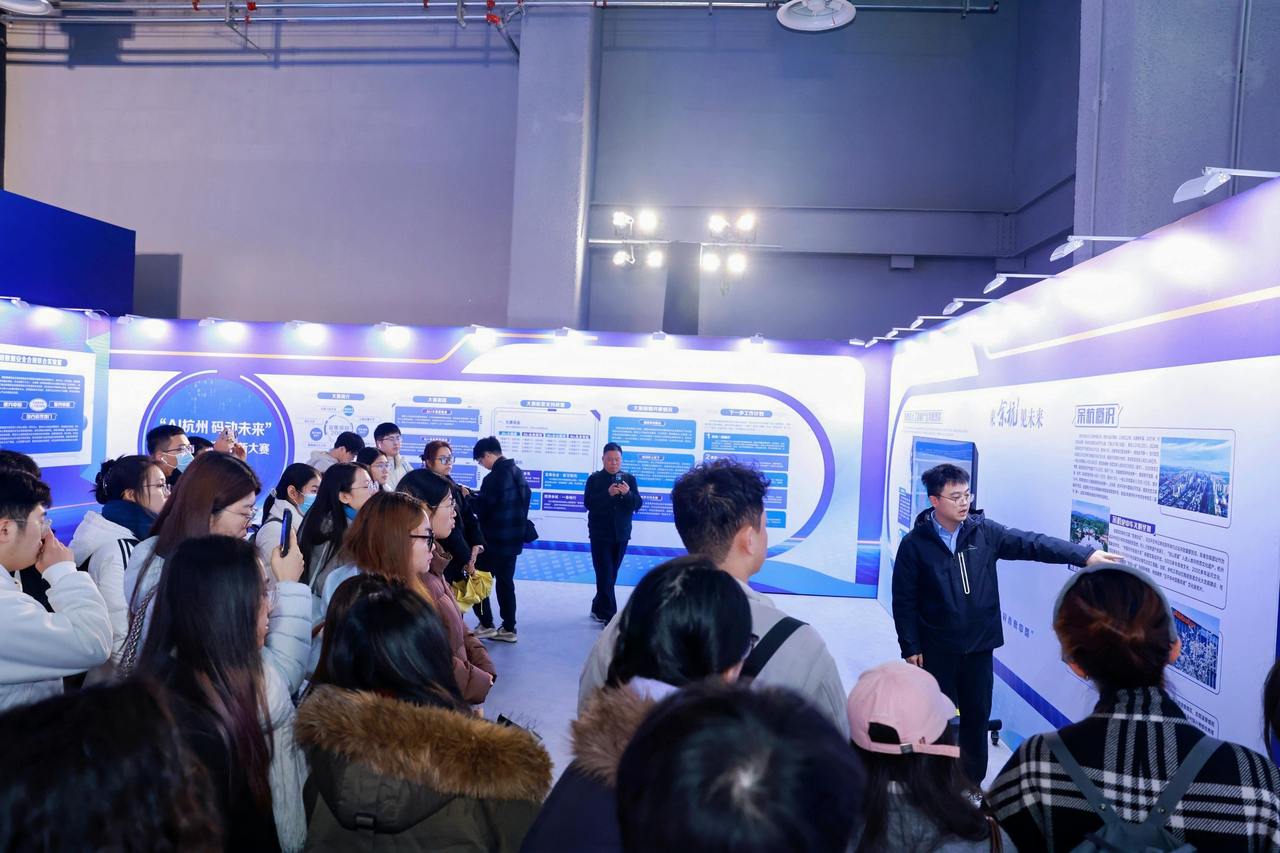 为了让青年人才从“听说余杭”升级为“感知余杭”,决赛当天还同步启动了“青年人才探索日”活动。近50名青年人才走进杭州未来科技城城市展馆、钉钉、智澄AI等区内标志性企业与平台,开展AI主题参观调研。